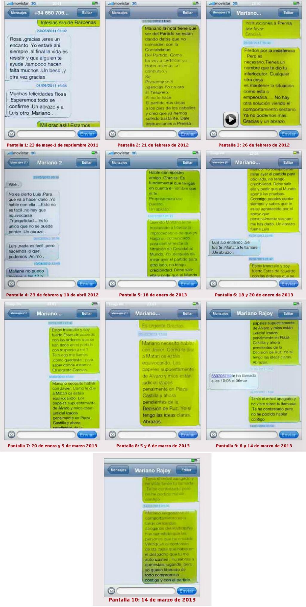 Rajoy ...intercambió SMS... con Bárcenas hasta marzo de 2013